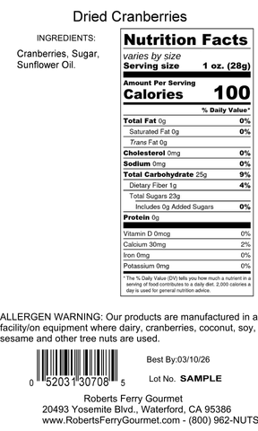 Dried cranberries are a perfect addition for trail mixes or baking, and make a great stand alone snack!